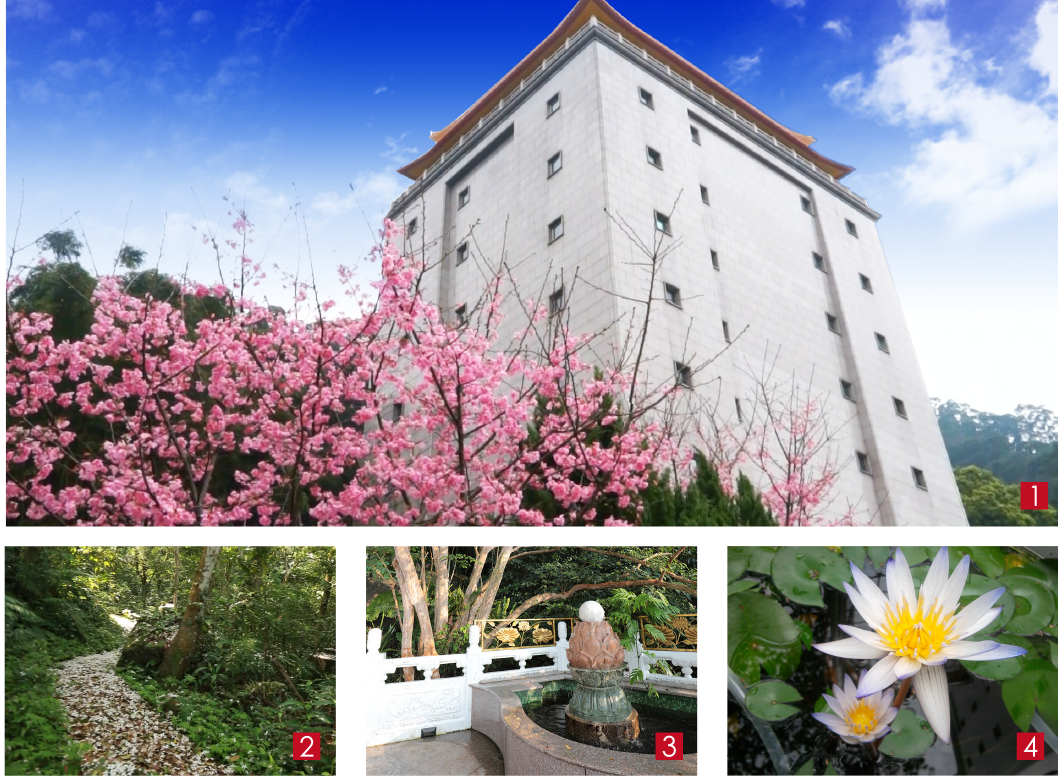 位於環山步道小徑處的蓮花池,花瓣層層交映,如出水芙蓉般清新 脫俗,讓七、八月的暑氣頓時消散。